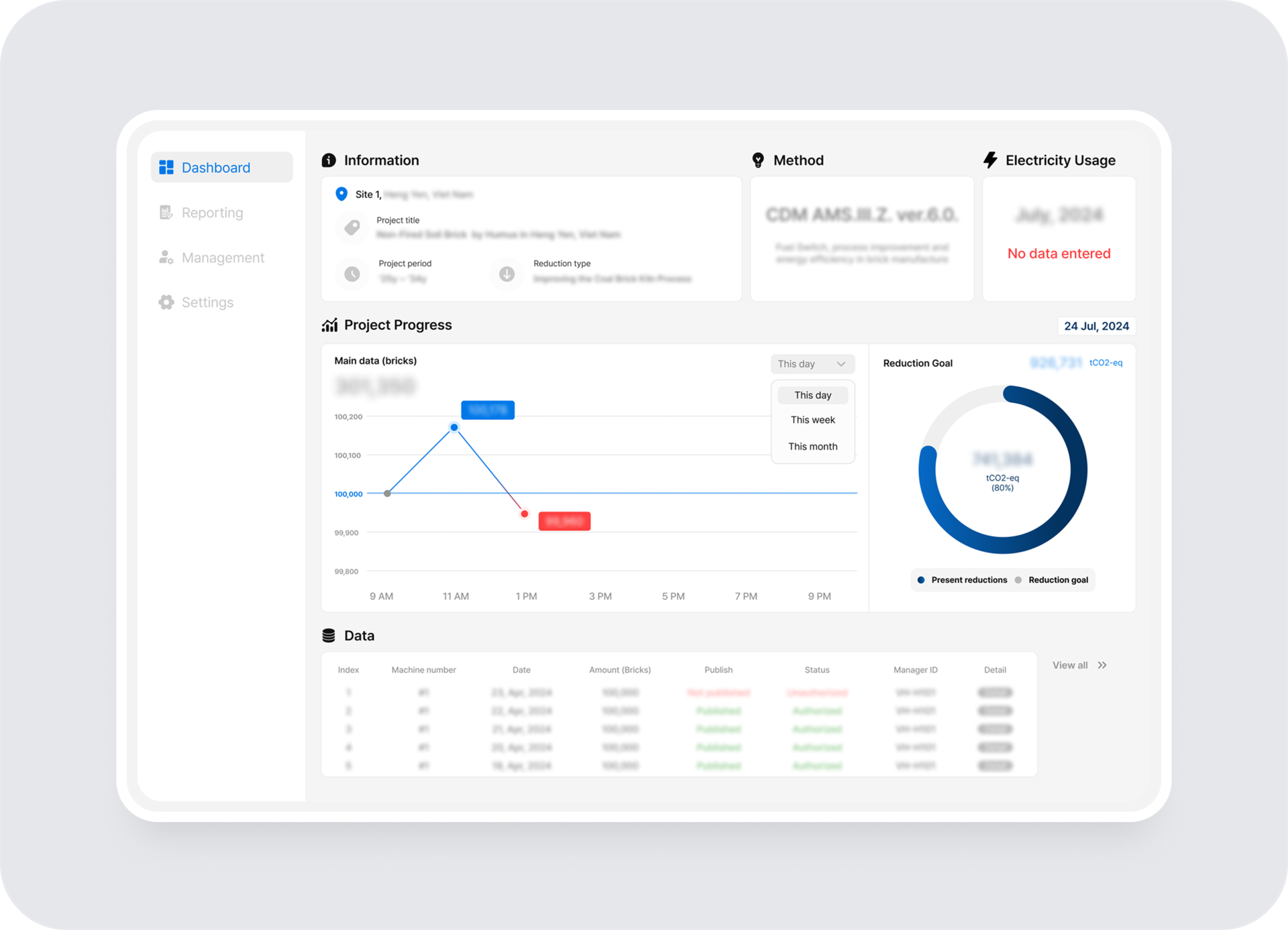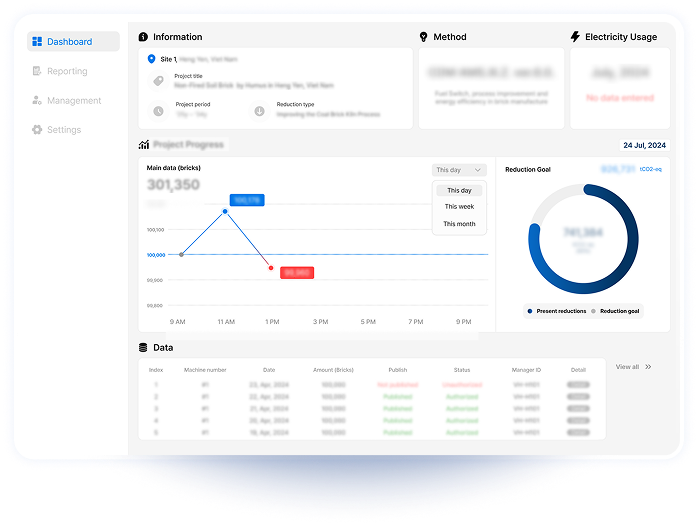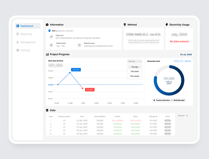 베트남 전역의 전통 석탄 기반 벽돌 제조 시설을 전기 프레스 방식으로 전환하는대규모 탄소 감축 프로젝트입니다. NewTonne의 디지털 MRV 시스템을 통해실시간으로 탄소 감축량을 모니터링하고 국제 표준에 따라 검증하고 있습니다.
